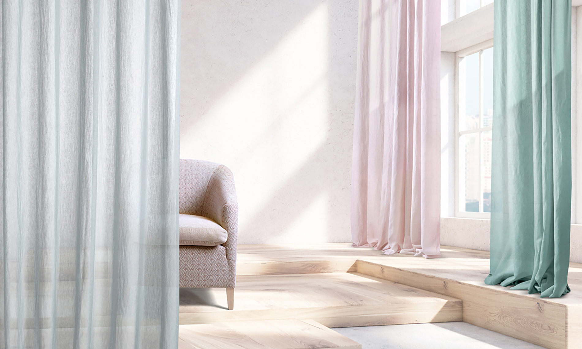 Plain sheers made with high-quality yarns and innovative finishing. The colour range has been carefully developed, perfectly balancing pastel colours, grey and natural hues. Special attention was given to the soft feel and appearance of these sheers.