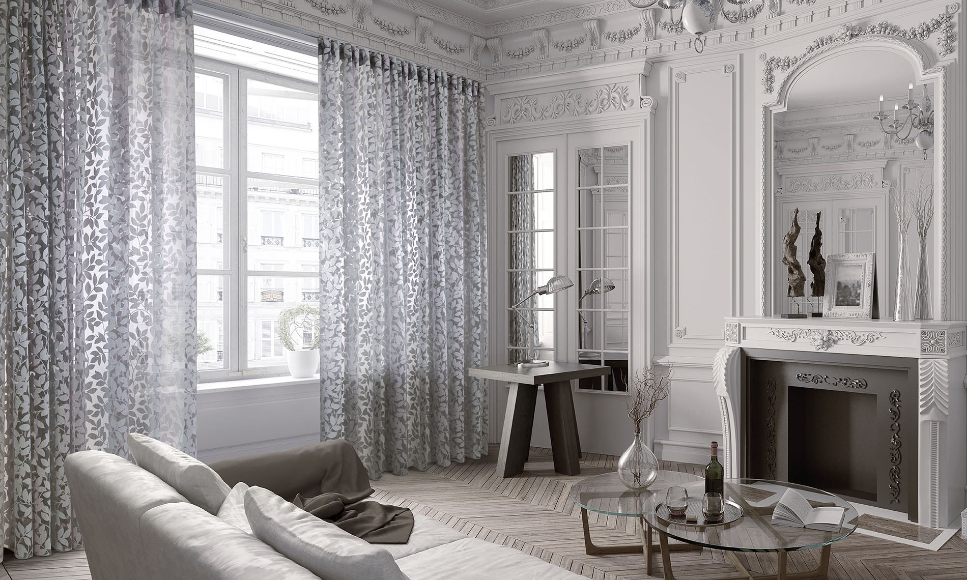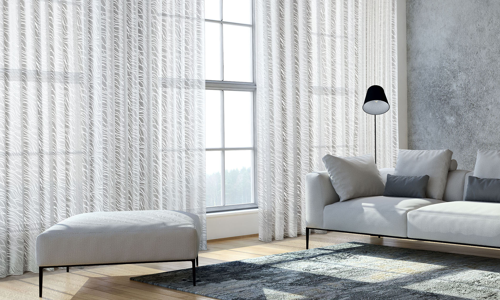Purely contemporary sheers in a wide range of designs, ranging from embroideries, fil coupés, jacquards, burnouts and plain with ombre effects, geometrical patterns and very peculiar finishing.