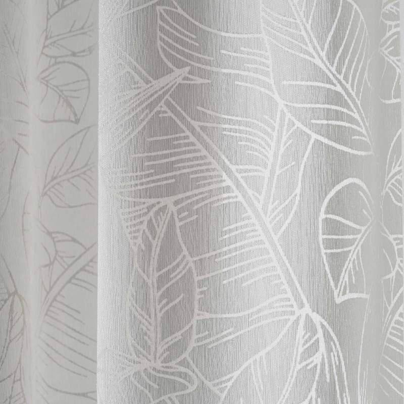 Tenda devoré con un delicato motivo a foglie su un fondo jacquard a microrighe